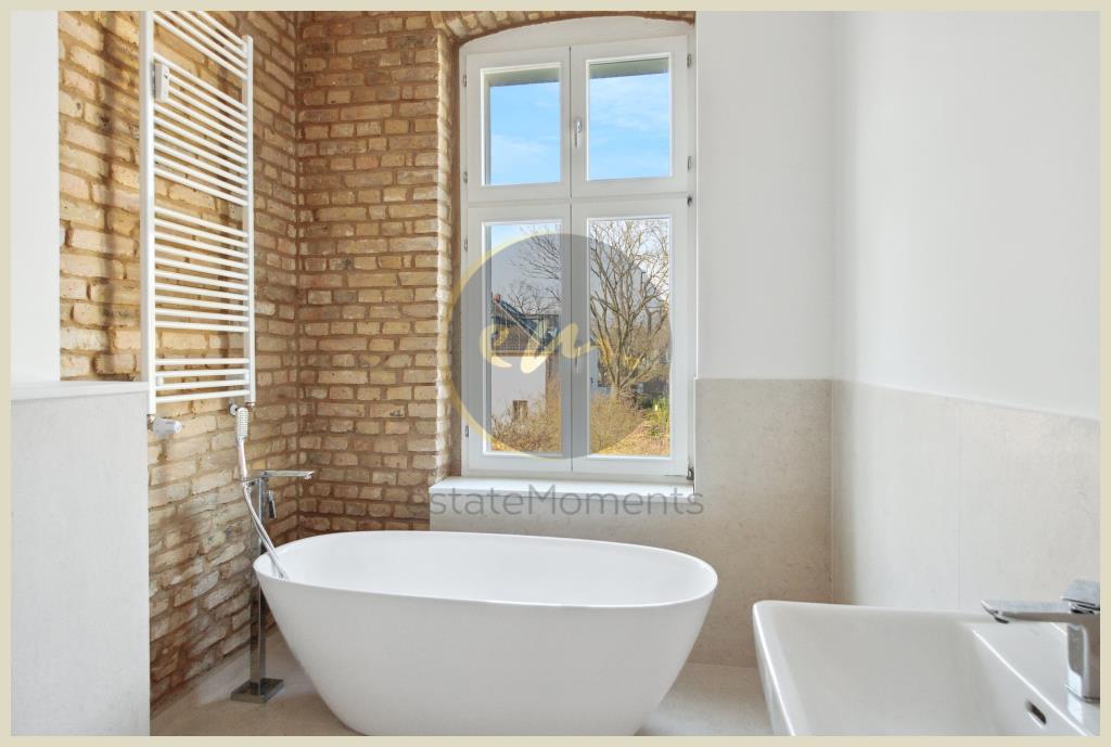Im Dachgeschoss, im Treppenaufgang, dem Küchenbereich, im Badezimmer sowie im Wohnbereich wurde an geeigneten Stellen das Backsteinmauerwerk freigelegt und optisch ansprechend als Sichtmauerwerk ausgeführt.