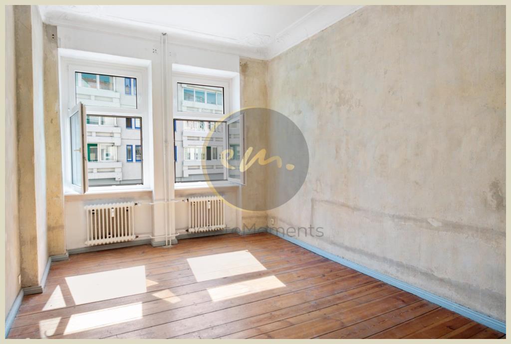 Die Wohnung selbst liegt im 2. Obergeschoss des Vorderhauses und verfügt über 2 Zimmer, eine geräumige Küche mit Platz für einen Essbereich, ein Tageslichtbad mit Badewanne und eine Loggia mit Südostausrichtung. Die Zimmer und der Flur verfügen über einen komplett überarbeiteten Dielenboden. Sämtliche Wandflächen wurden im Zuge der bisherigen Arbeiten glatt gespachtelt und neu gestrichen. An den Decken der Wohnung sind teilweise die ursprünglichen Stuckverzierungen noch vorhanden. Das vorhandene Wannenbad wird im Zuge der Modernisierung der Wohnung frisch saniert (im Rahmen der durch den Milieuschutz genehmigten Möglichkeiten).