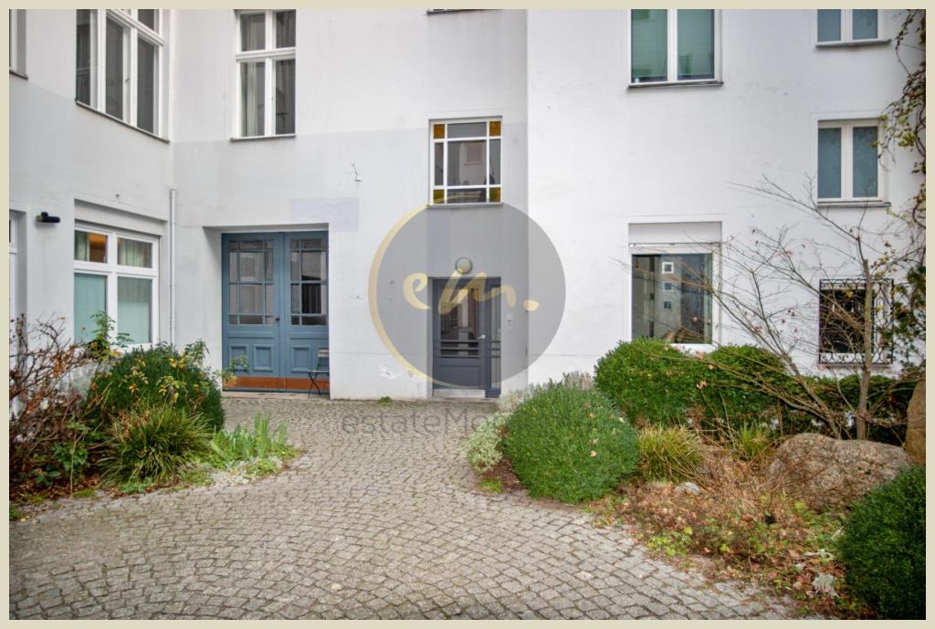 Das Wohnensemble des Berliner Altbaus besteht aus Vorderhaus, rechtem Seitenflügel und anschließenden Quergebäude und wurde ca. 1893 in geschlossener Bauweise errichtet. Die straßenseitige Fassadenansicht wirkt schlicht, jedoch gepflegt. Umso überraschender der Eindruck beim Betreten des Hauses über einen repräsentativen Hausflur mit Deckenstuckelementen und stilvollem Altbaufliesenboden sowie dem ansprechend begrünten Innenhof.