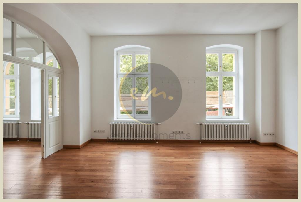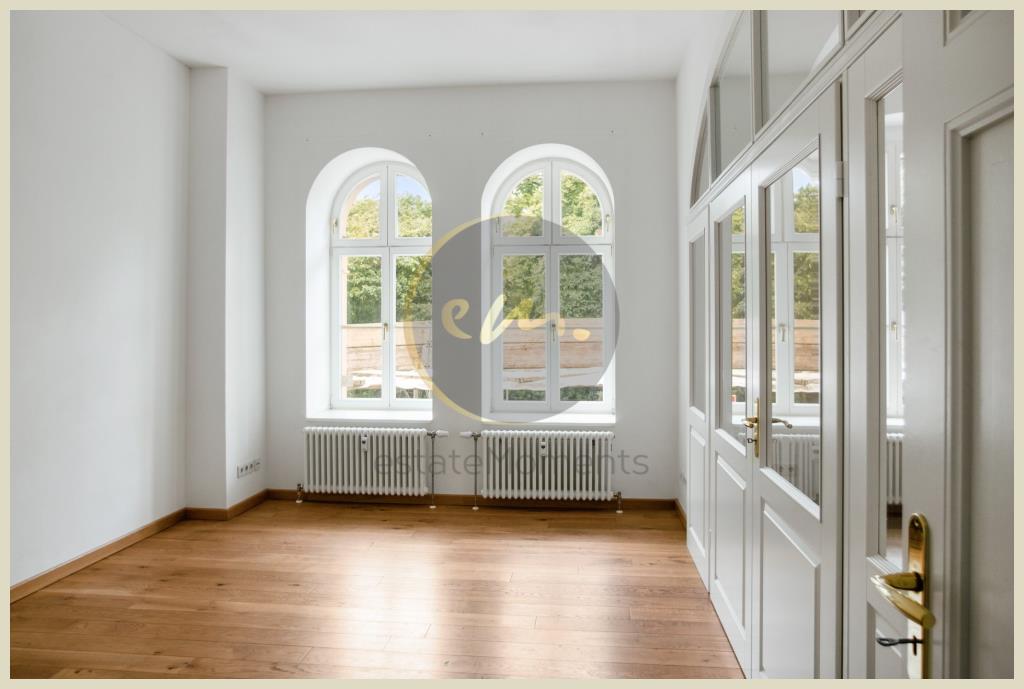 Die altbautypische Deckenhöhe (ca. 3,10 m) sorgt zusammen mit Rundbögen über den Fenstern sowie hochwertigen Türen in Altbauoptik für einen ansprechenden Altbaucharme mit Neubauqualität. Die Wohn- und Schlafräume sind mit Echtholt-Kurzdielen ausgestattet, der Küchenbereich mit Fliesen in Holzoptik.