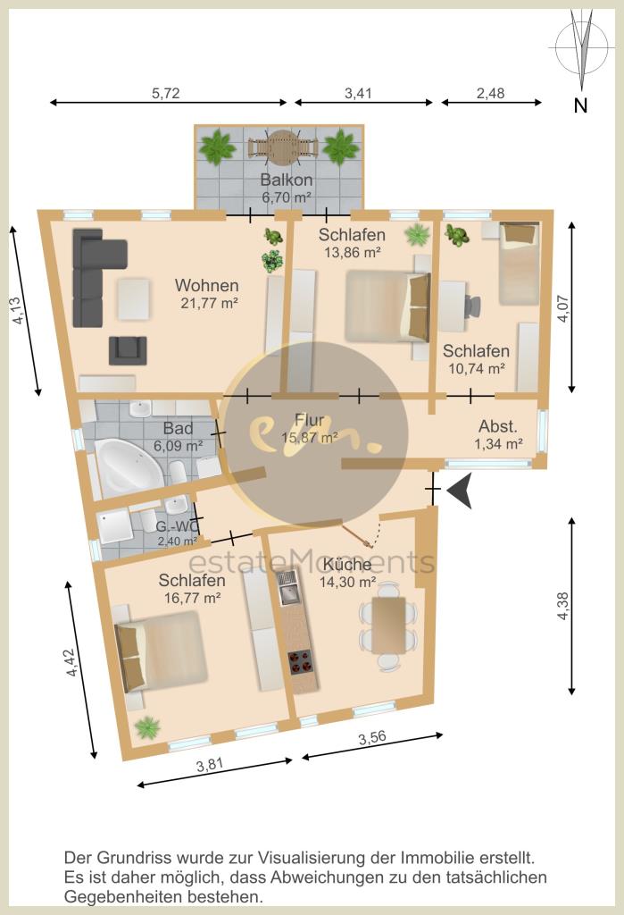 Gerne lassen wir Ihnen für diese Immobilie bei Vorlage einer Kontaktformularanfrage mit Ihrem Vor- und Nachnamen, Ihrer Wohnanschrift, Ihrer Telefonnummer sowie Email-Adresse, ein ausführliches Exposé mit ergänzenden Angaben (z. B. Grundriss, zusätzliche Fotos und zusätzliche Informationen) zukommen. Unsere Exposés enthalten zudem die Anschrift der Immobilie, damit es ihnen möglich ist, sich zunächst einen Eindruck von der konkreten Lage zu verschaffen. Es gelten unsere Allgemeinen Geschäftsbedingungen. Diese sowie unser Impressum finden Sie auf unserer Internetseite: www.estate-moments.de. Dieses Verkaufsangebot ist an Kaufinteressenten gerichtet. Bei Zustandekommen eines notariellen Kaufvertrags entsteht unser Anspruch auf Zahlung der genannten Provision somit gegenüber dem Käufer. Darüber hinhaus sind vom Käufer auch die Grunderwerbssteuer (6 % des Kaufpreises) sowie die Notar- und Grundbuchgebühren (ca. 2 % des Kaufpreises) zu bezahlen.