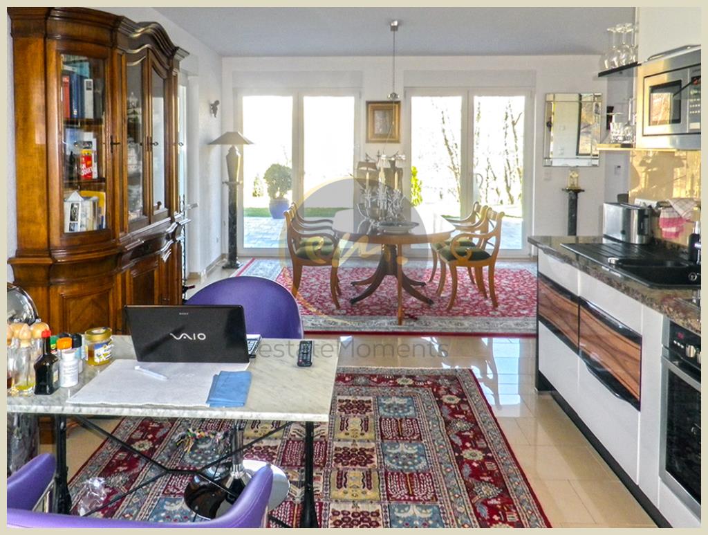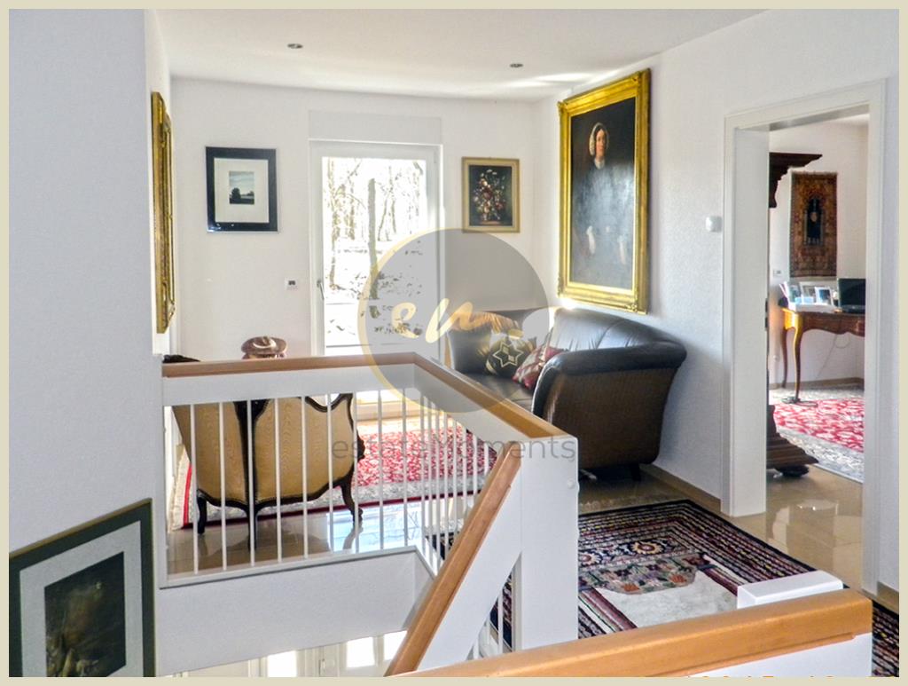 Dieses Neubau-Einfamilienhaus befindet sich auf einem großzügigen Grundstück in Hanglage und grenzt direkt an eine weitläufige Grünfläche an. Von der Terrasse bzw. dem Balkon genießt man somit einen unverbaubaren Weitblick. Der Zustand des Hauses ist neuwertig und optisch ansprechend. Der Eigentümer hat den Bau des Einfamilienhauses fortlaufend persönlich begleitet. Die bauliche Ausführung sowie die Ausstattung sind geprägt durch Qualität und anspruchsvolles Design. Unter anderem verfügt das Einfamilienhaus über bodentiefe Fenster, Fußbodenheizung, einen Kamin sowie zusätzlich zur großen Terrasse auch über einen Balkon. Trotz der Lage im Neubaugebiet, bieten der Garten sowie die Wohn- und Schlafräume ausreichend Privatsphäre, da diese von außen nicht einsehbar sind. Besondere Merkmale sind weiter die hellen Räume, der attraktive Grundriss, sowie die ruhige Wohnlage. Zum Haus gehört unter anderem eine Doppelgarage mit elektrisch betriebenem Rolltor. Das komplette Grundstück ist mit einem Wildzaun umzäunt und im Hangbereich aufwendig bepflanzt. Die Zufahrt zum Grundstück erfolgt durch ein funkgesteuertes Tor.
