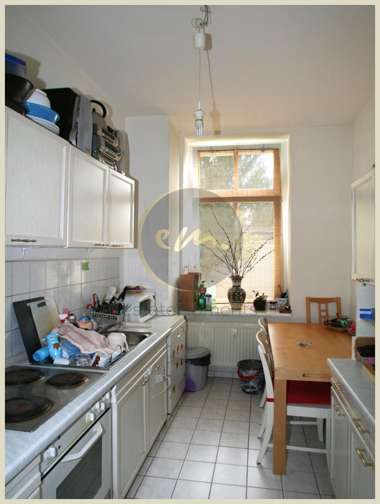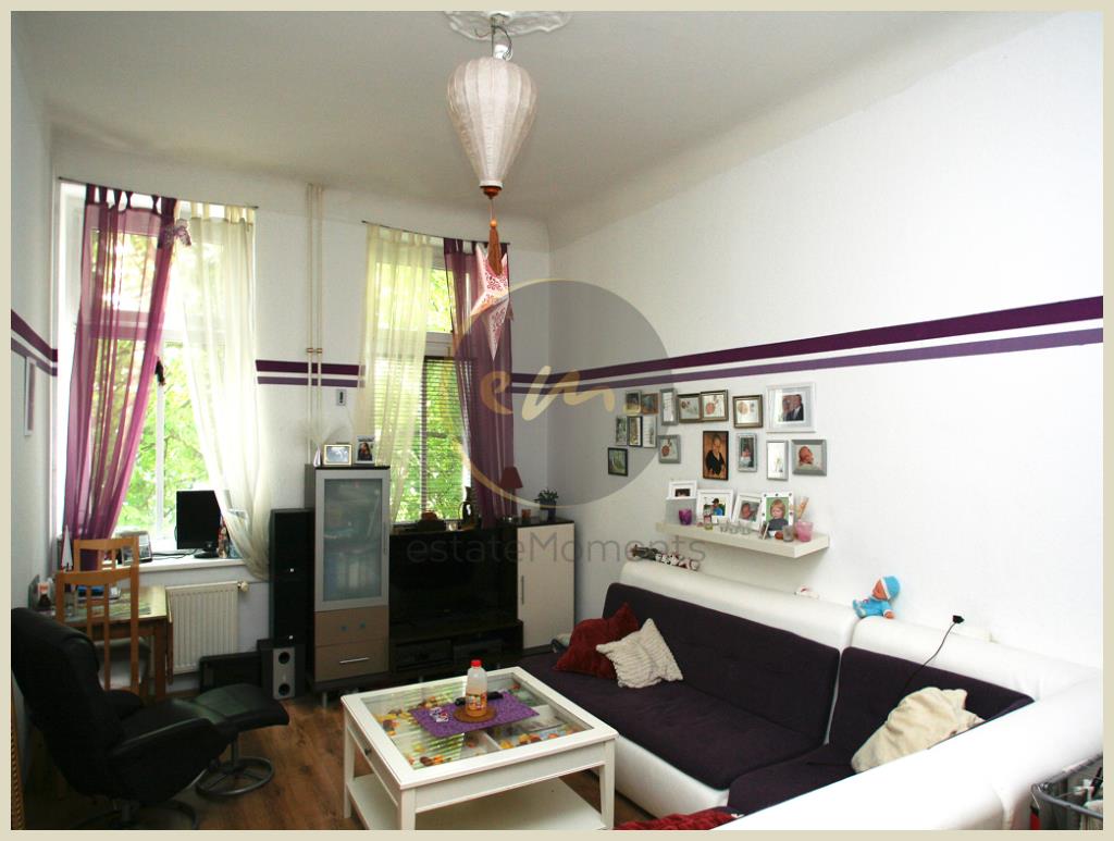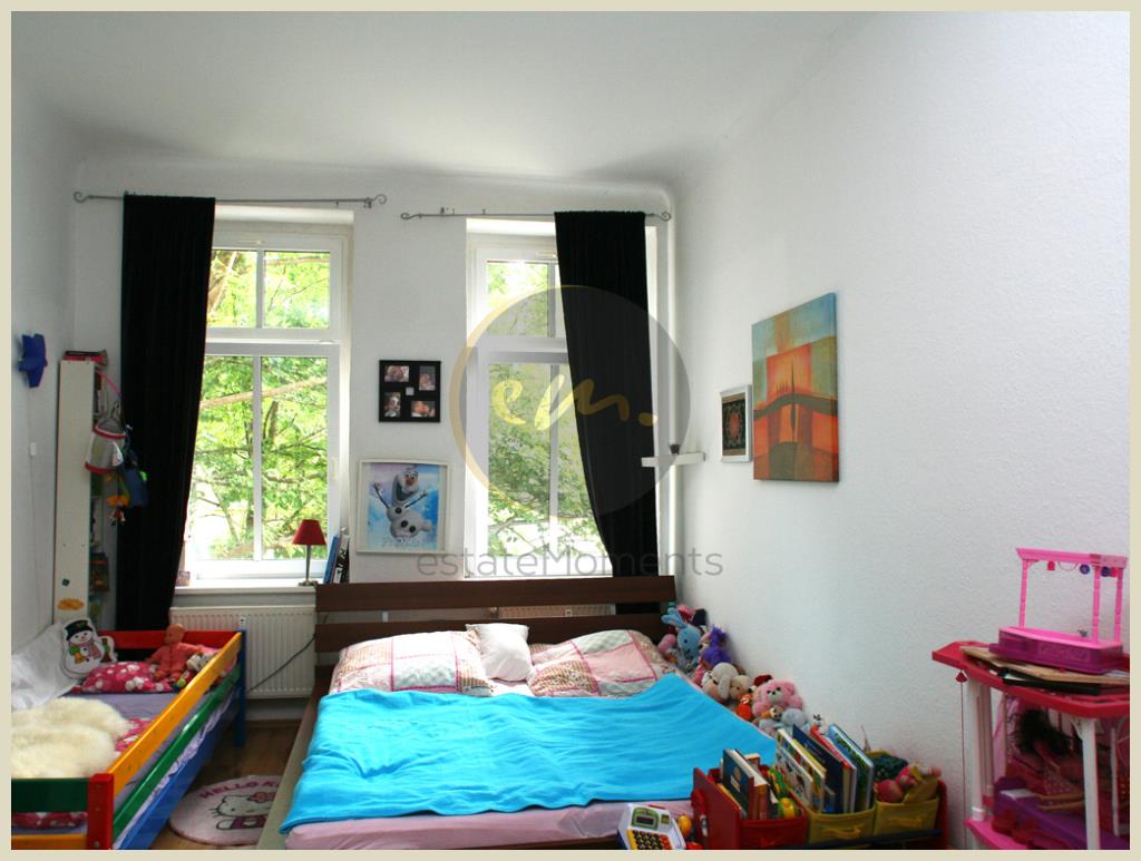 Die Besonderheiten der Wohnung sind die angenehme Raumhöhe sowie der attraktive Grundriss mit Tageslicht-Wannenbad. Das Schlafzimmer ist nach Südwesten ausgerichtet, das Wohnzimmer nach Nordosten. Die Wohnung verfügt über eine großzügige Küche mit Stellmöglichkeit für einen Esstisch. Die beiden Zimmer sind separat begehbar (kein Durchgangszimmer) weswegen grundsätzlich auch eine Vermietung als Wohngemeinschaft möglich ist.