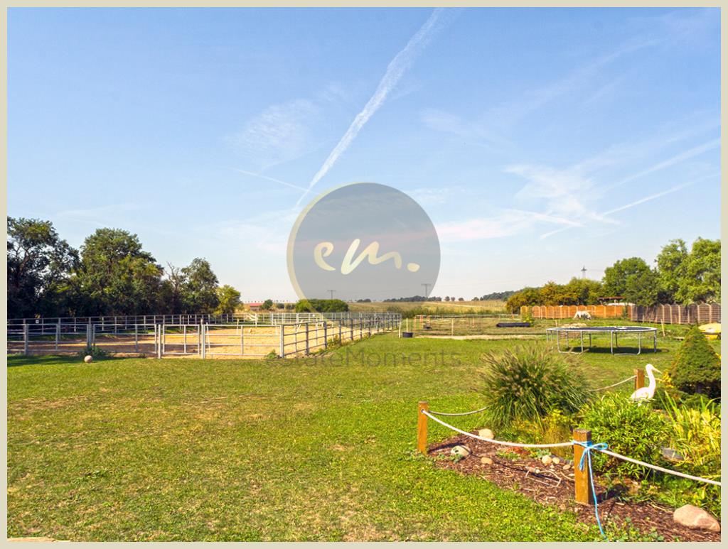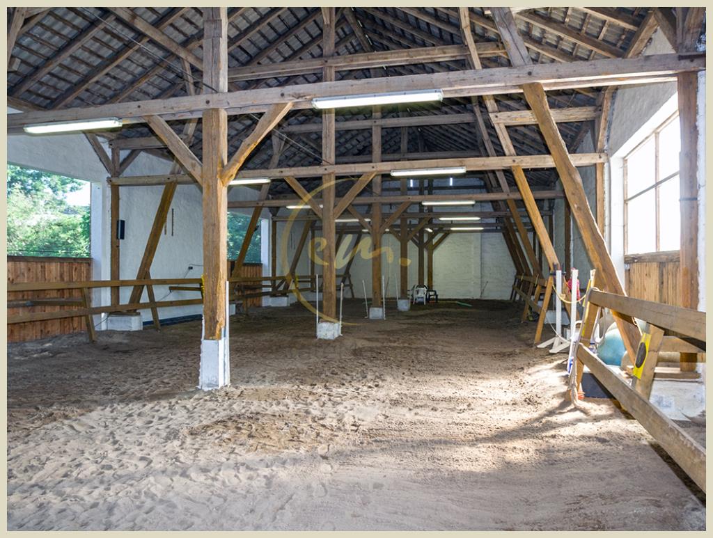 Dieses Grundstück wird seit mehreren Jahren zum Betrieb einer familiengeführten Reitschule im Vollerwerb genutzt. Mit aktuell ca. 50 Reitverträgen erwirtschaftet die Reitschule nach Abzug aller Kosten einen ordentlichen Jahresüberschuss. Insgesamt werden derzeit wöchentlich ca. 100 Reitschüler und sechs Pensionspferde betreut. Es besteht die Möglichkeit, den laufenden Geschäftsbetrieb (einschließlich Ausstattung und Pferden gegen Aufpreis) zu übernehmen und eigenständig zu erweitern. Alternativ bietet das Grundstück zahlreiche weitere Nutzungsmöglichkeiten (insbesondere anteilige Wohnbebauung, Ferienhausbebauung mit angeschlossenem Reiterhof, landwirtschaftliche Nutzung, Freizeitgrundstück, Mehrgenerationenwohnen oder Kommune für Aussteigerprojekt). Die aktuelle Bebauung besteht aus einer großzügigen Bewegungshalle (ca. 40 m x 13 m) mit angeschlossenem Sanitärbereich, Sattelkammer und Lagerbereich. Der Lagerbereich verfügt über ein nicht ausgebautes Dachgeschoss. Das Stallgebäude (Bewegungshalle) und der Sanitärbereich wurden im Jahr 2005 modernisiert und befinden sich in einem guten Zustand. Weiter sind vorhanden: Reitplatz (40 m x 20 m), Longierzirkel, Offenstall (ca. 120 m², Holzbauweise), zwei Paddocks (ca. 5.000 m²), Ovalbahn (ca. 300 m) und weitläufige Weideflächen. Das gesamte Grundstück und die baulichen Anlagen befinden sich in einem gepflegten Zustand. Von unangekündigten Besichtigungsterminen bitten wir abzusehen, um den laufenden Schulbetrieb nicht zu stören.