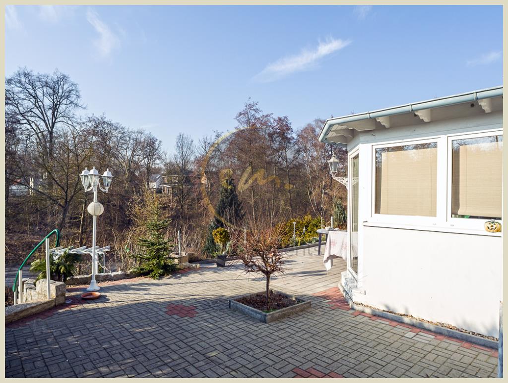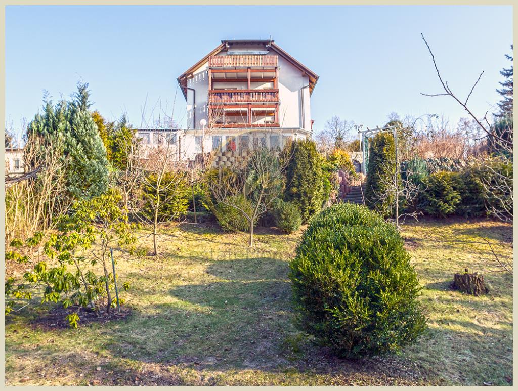 Das Grundstück befindet sich in Hanglage und der Gartenbereich ist in Richtung Westen stufenartig in verschiedene Gartenterrassen angelegt, vergleichbar mit Weinbergerrassen. Über den Gartenbereich des Grundstücks hat man direkten Zugang zum Uferweg des Schwanengrabens, auf den man vom Garten und den Balkonen aus einen wunderbaren Ausblick hat.