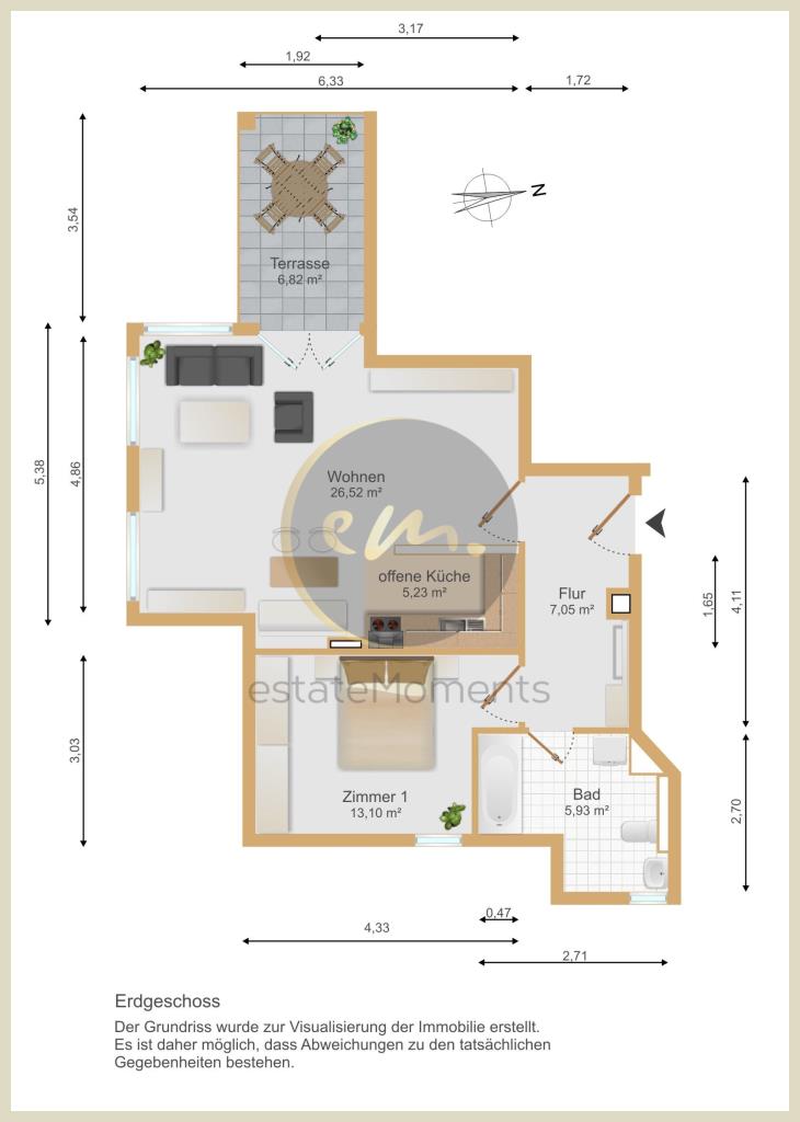 Gerne lassen wir Ihnen für diese Immobilie bei Vorlage einer Kontaktformularanfrage mit Ihrem Vor- und Nachnamen, Ihrer Wohnanschrift, Ihrer Telefonnummer sowie Email-Adresse, ein ausführliches Exposé mit ergänzenden Angaben (z. B. Grundriss, zusätzliche Fotos und zusätzliche Informationen) zukommen. Unsere Exposés enthalten zudem die Anschrift der Immobilie, damit es ihnen möglich ist, sich zunächst einen Eindruck von der konkreten Lage zu verschaffen. Es gelten unsere Allgemeinen Geschäftsbedingungen. Diese sowie unser Impressum finden Sie auf unserer Internetseite: www.estate-moments.de. Dieses Verkaufsangebot ist an Kaufinteressenten gerichtet. Bei Zustandekommen eines notariellen Kaufvertrags entsteht unser Anspruch auf Zahlung der genannten Provision somit gegenüber dem Käufer. Darüber hinhaus sind vom Käufer auch die Grunderwerbssteuer (in Berlin 6 % und in Brandenburg 6,5 % des Kaufpreises) sowie die Notar- und Grundbuchgebühren (ca. 2 % des Kaufpreises) zu bezahlen.