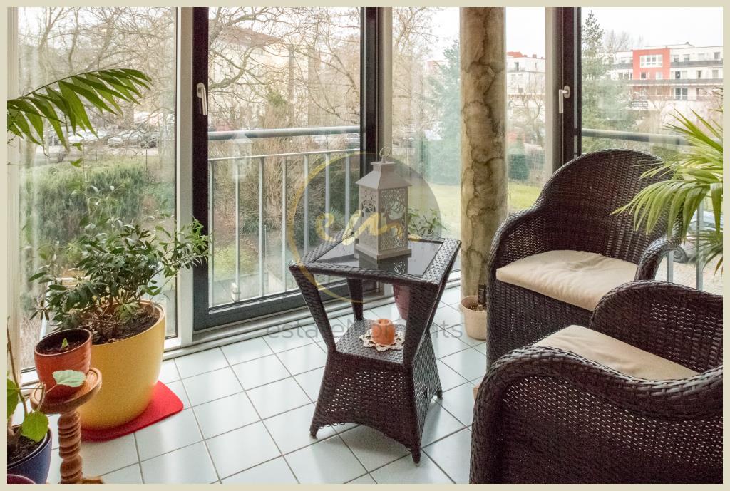 Die helle Etagenwohnung befindet sich im ersten Obergeschoss und ist Teil einer im Jahr 1995 neu errichteten Wohnanlage. Die Immobilie befindet sich in unmittelbarer Nähe zum Seepark in einer attraktiven Wohngegend im Ortsteil Karlshorst. Das Wohngebäude ist in einem guten Bauzustand und optisch ansprechend. Bodentiefe Fenster mit französischen Balkonen sorgen in der Wohnung für Helligkeit und eine angenehme Raumatmosphäre. Die Wohnung ist mit einem nach Westen ausgerichteten Wintergarten ausgestattet, der über das Wohnzimmer begehbar ist und auch wie die ganze Wohnung mit Fußbodenheizung ausgestattet ist. Darüber hinaus besticht die Wohnung durch ihren attraktiven Grundriss. Zu der Etagenwohnung gehört ein Abstellraum im Keller und ein Sondernutzungsrecht an einem Garagenstellplatz.