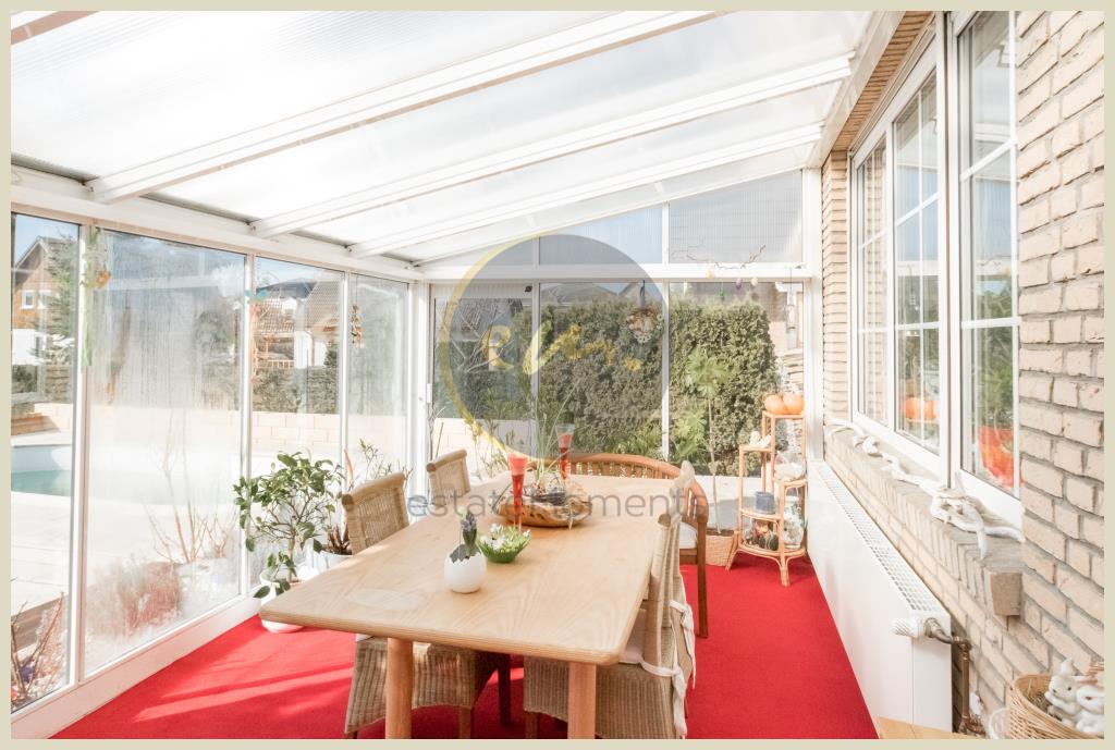 Dieses vollunterkellerte Einfamilienhaus mit Vollklinkerfassade wurde im Jahr 1992 in Massivbauweise errichtet und seitdem laufend modernisiert und mit zusätzlicher Ausstattung versehen. Unter anderem wurden sämtliche Zimmertüren und Zargen ausgetauscht. Der helle Wohnbereich lädt durch den offenen Kamin und den angrenzenden Wintergarten zu gemütlichem Beisammensein ein.