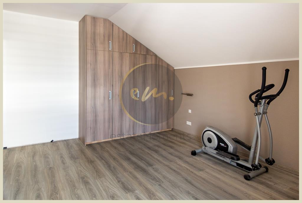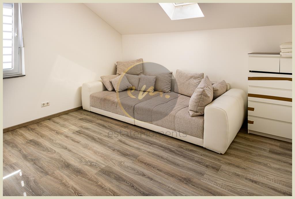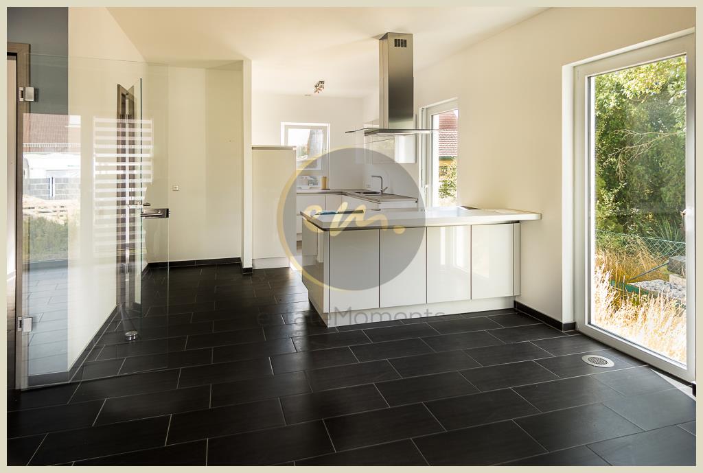 Im Obergeschoss befinden sich neben dem Hauptbad noch drei weitere Zimmer, die wahlweise als Schlaf- oder Arbeitszimmer genutzt werden können. Alle Räume sind mit moderner Fußbodenheizung ausgestattet. Das Haus verfügt außerdem über ein Gäste-WC und einen Hauswirtschaftsraum. Im Kaufpreis sind neben der neuen Einbauküche auch zwei vorhandene Einbauschränke enthalten.